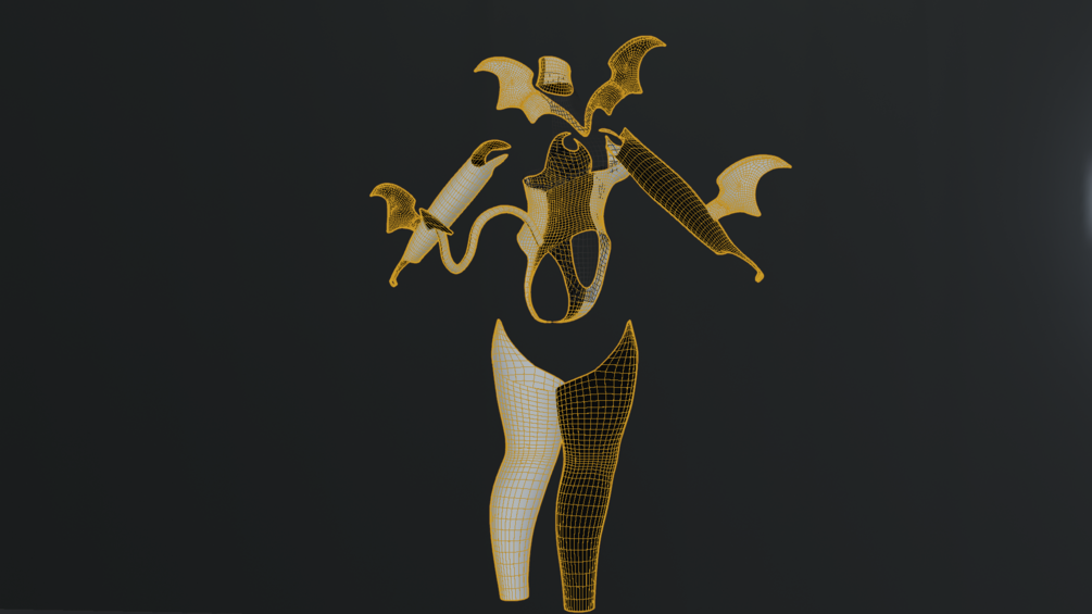 This outfit was made entirely by me in Blender only. Comes with a UV mapped version and a custom half and half texture made in Blender. The wings are all rigged for physics. Rigged to Pandaa's Flat Foot Base.